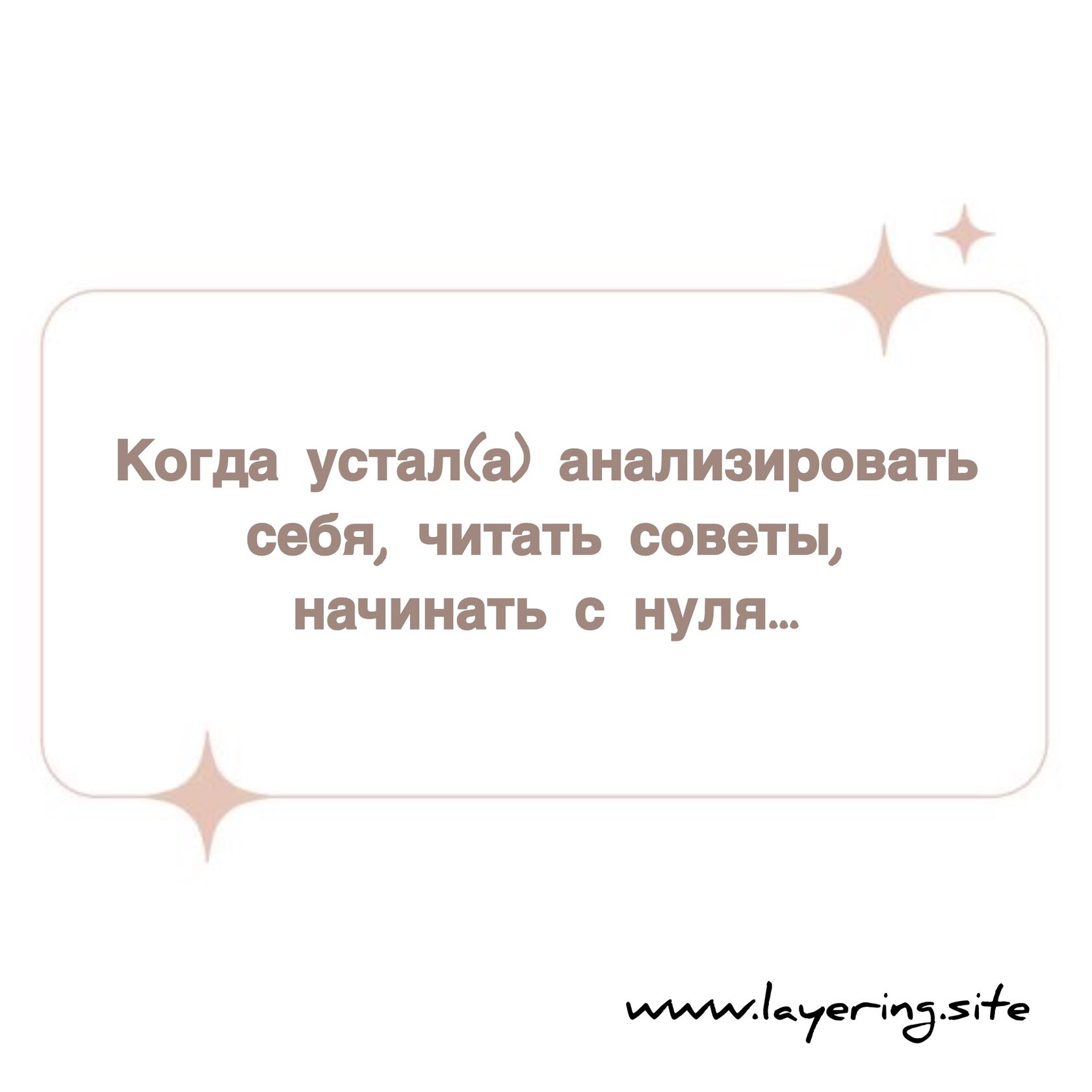 Кредо - как форма внутренней опоры Иногда всё, что нужно, — увидеть своё состояние со стороны. Перейти на сайт Этот проект - проект поддержки тех, кто понимает, что все ответы в нас уже есть. Просто нужно попробовать их услышать. Мои методы помогают вам услышать себя. Каждый разбор — ручная работа, собранная из ваших, ощущений, смыслов и образов. Чтобы вернуться к себе — не к идеальной версии, а к настоящей. |